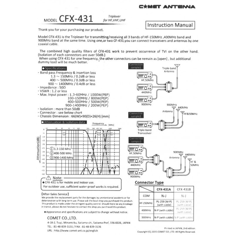 TRIPLEXER for 1.3-150/350-500/840-1400MHz