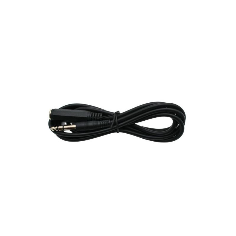 Un câble adaptateur pour casque noir de 2 mètres qui connecte une prise jack stéréo de 6,35 mm (1/4") à une prise stéréo, garantissant une transmission audio fiable.